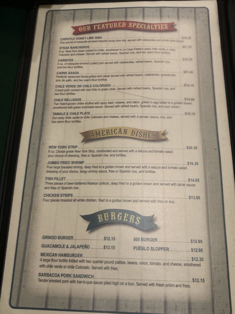 La Casa Fiesta Restaurant Menu (2025 Update)